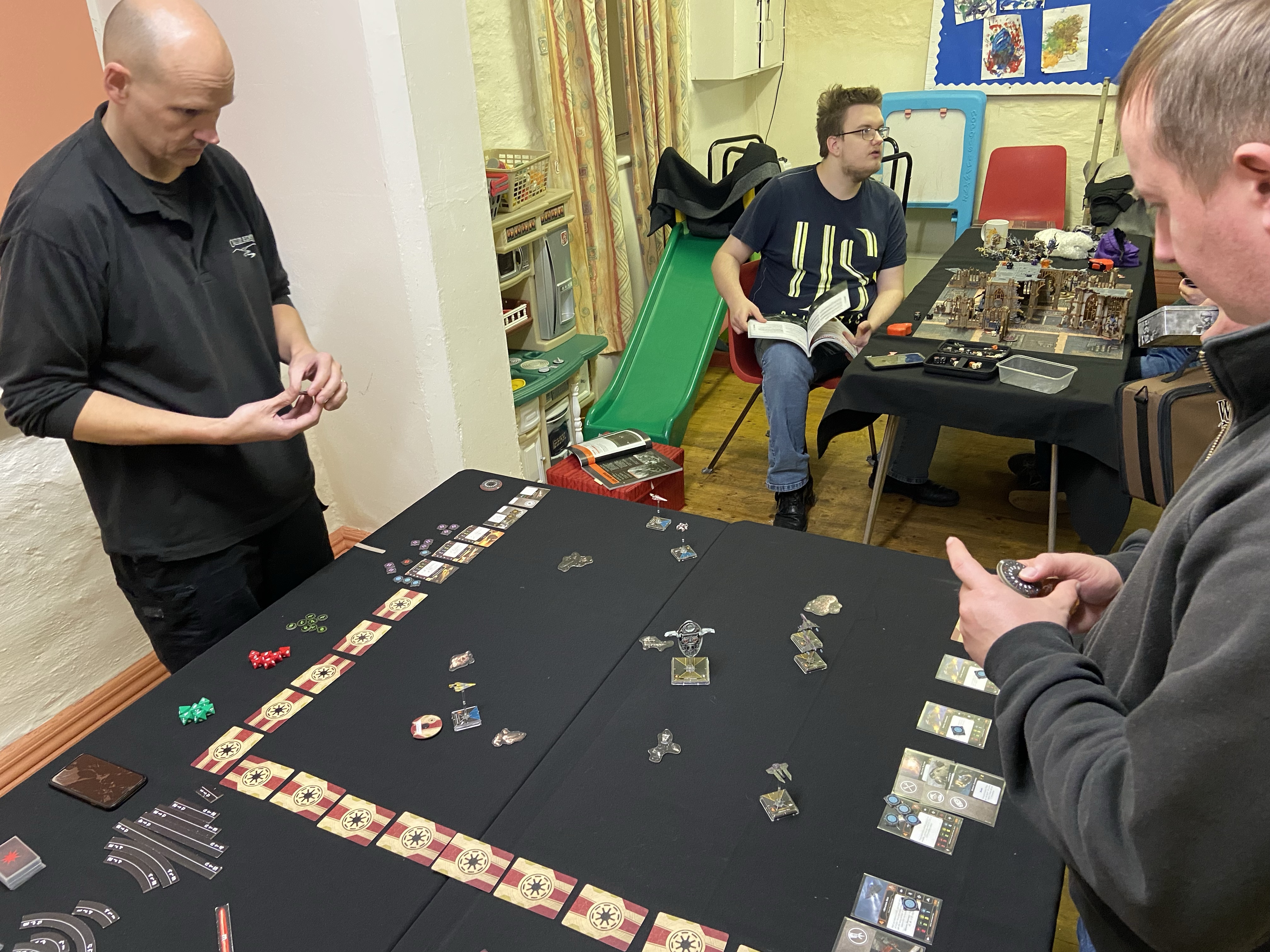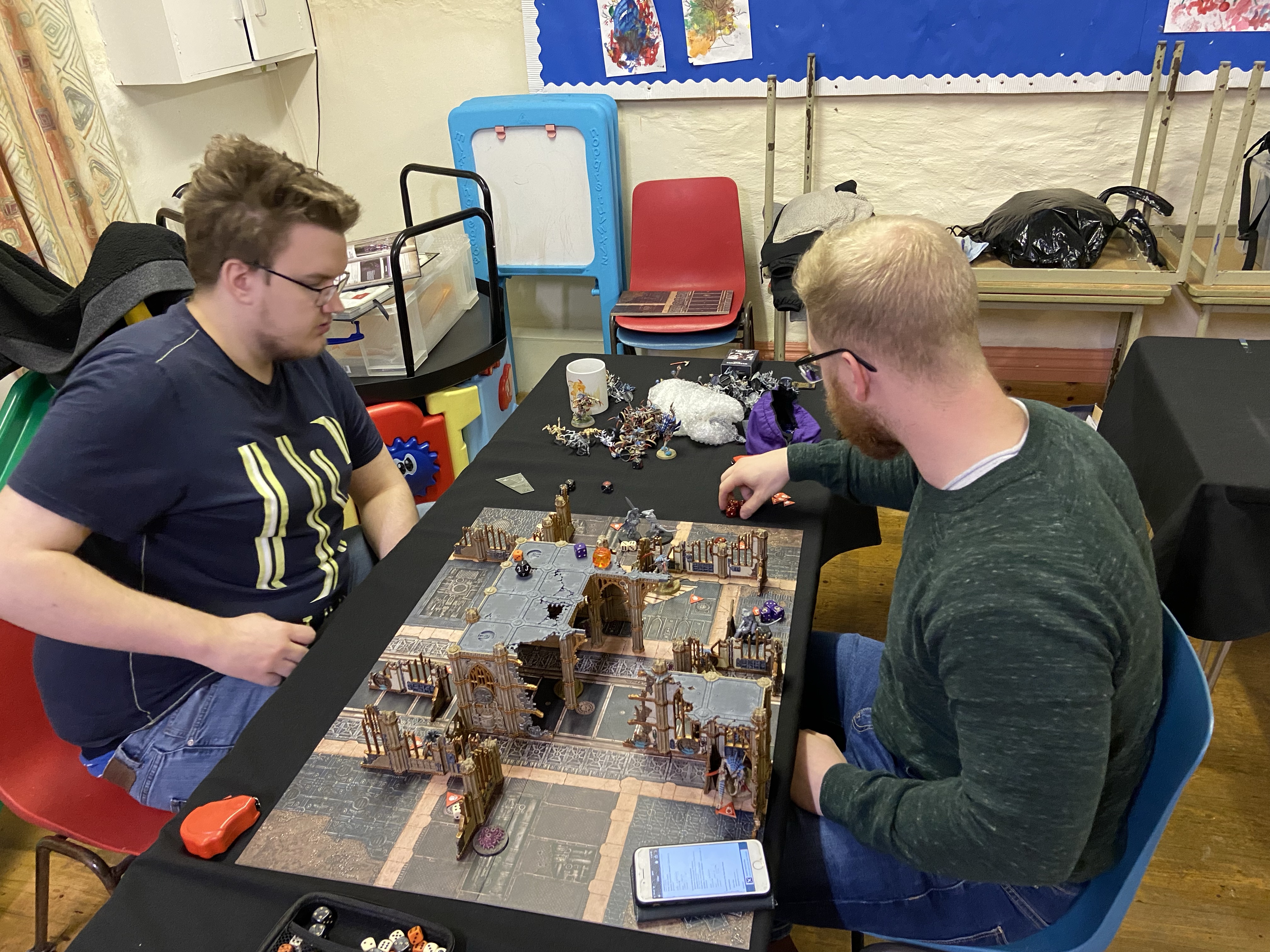 Our monthly small room night too place this evening (18/11/21) and we were rammed. Every corner was full of so many different games. 40K Kill Team was in full swing with marines, nids, chaos and orks all battling for victory.